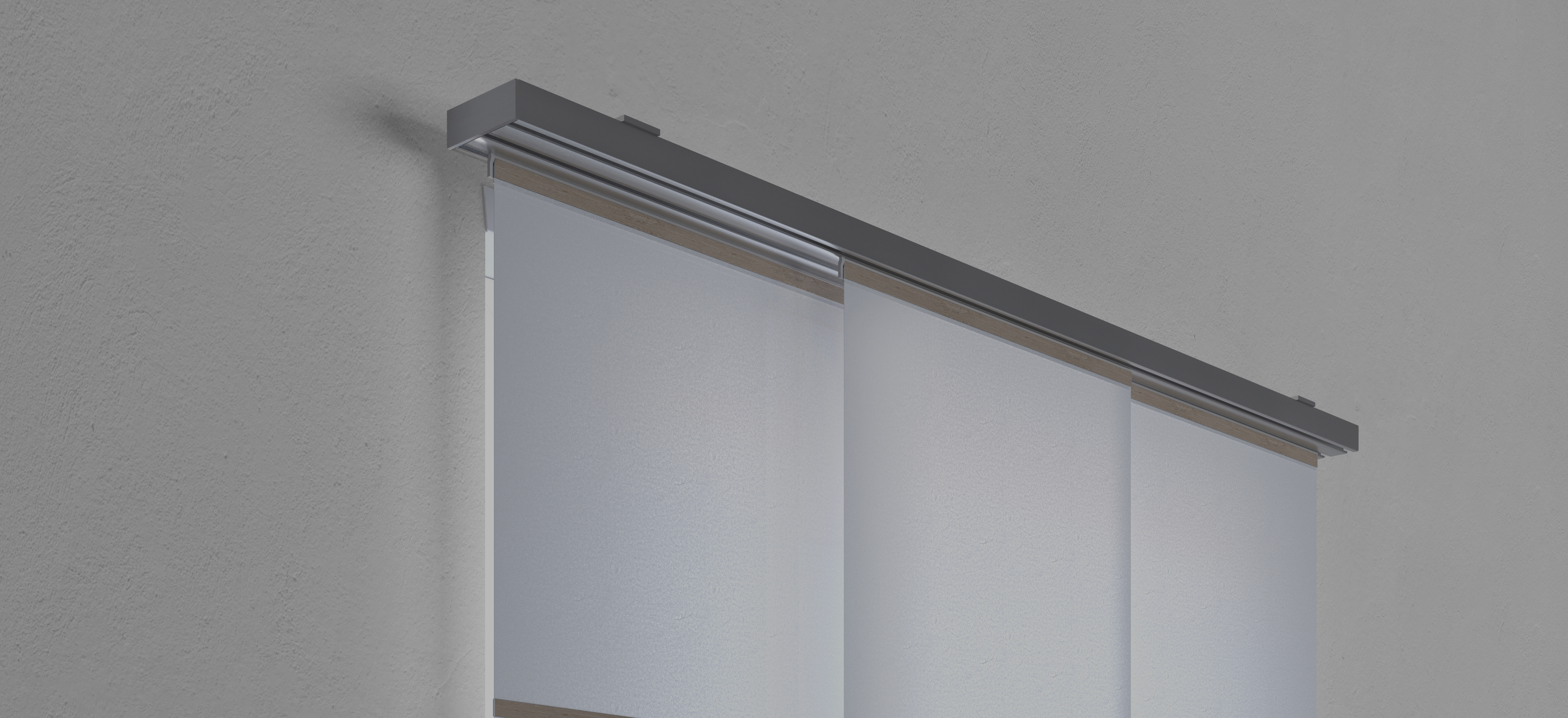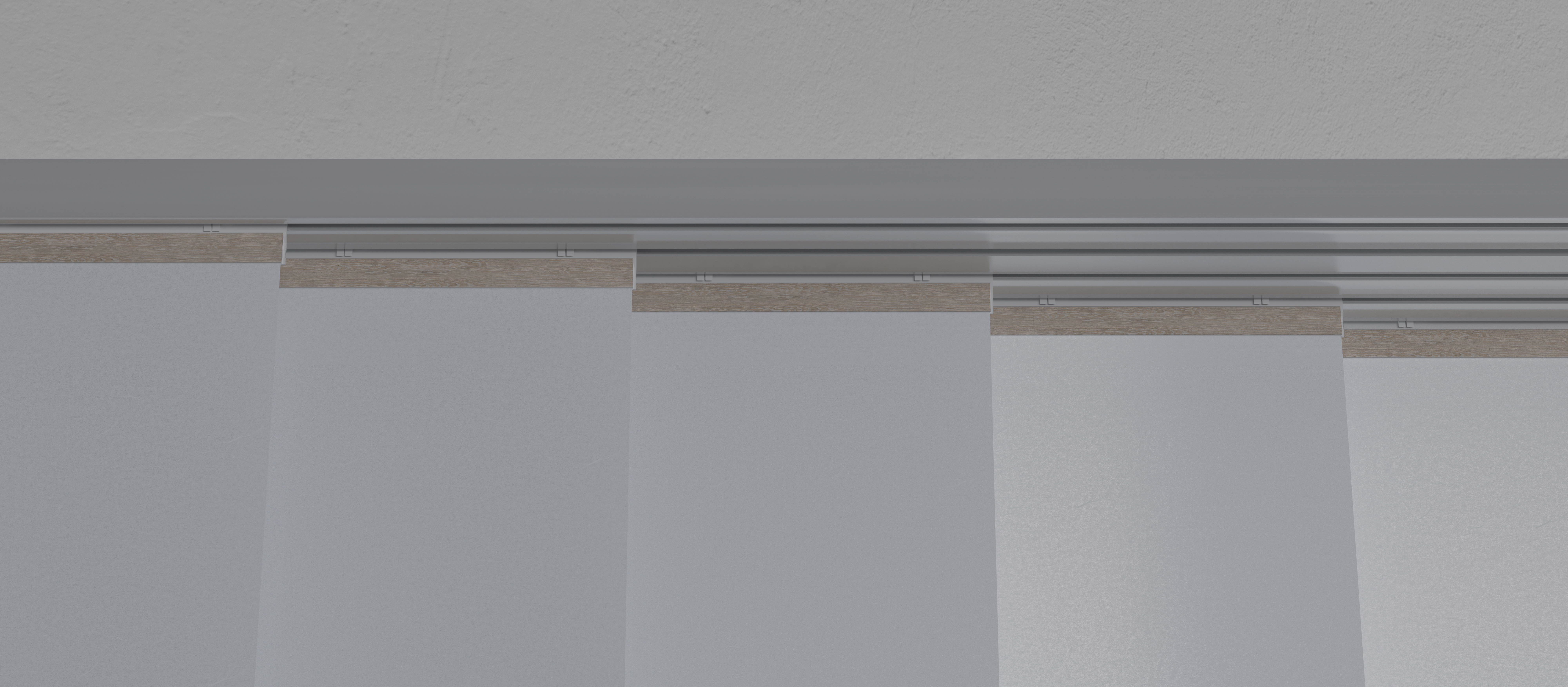 The mounting mechanism for Panel is easy and durable. The upper part of the screens are fitted with a strip of Velcro which in turn is attached to the carriage. The carriage is securely attached to the Panel-track, each of them can be as long as 6 meters.